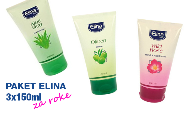 PAKET ELINA za roke (3x150ml): ELINA - Aloe Vera ELINA - Wild Rose ELINA - Olive