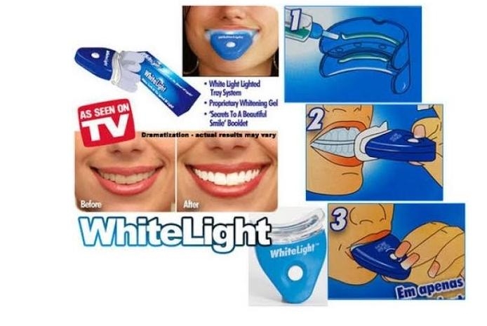Nimate časa za obisk zobozdravnika? Prihranite denar in čas! Aparat WhiteLight je prava rešitev za vas. Klinično je dokazano, da vam pomaga pobeliti zobe v le nekaj minutah. Aparat za beljenje zob je oblikovan za domačo uporabo kjerkoli in kadarkoli, saj deluje na baterije. Njegova uporaba je zelo preprosta, navodila pa so priložena izdelku. Aparat WhiteLight ima takojšen in trajen učinek.