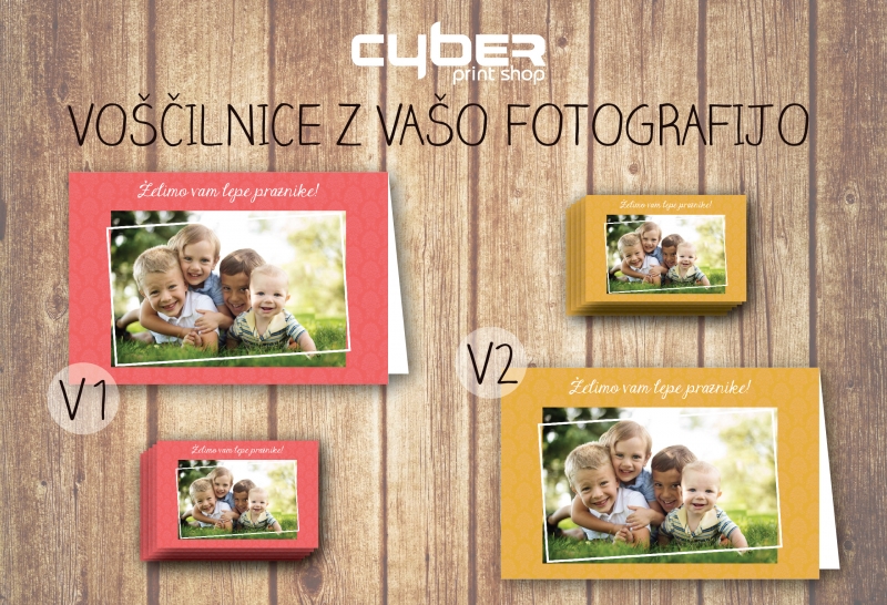 Zaželite "lepe praznike" s posebnimi personaliziranimi voščilnicami, ki bodo voščilu dale osebno noto! V Cyber print shopu vam izdelajo paket 10 enakih voščilnic, fotografijo (eno po izbiri) in vzorec pa izberete sami po vašem okusu.
