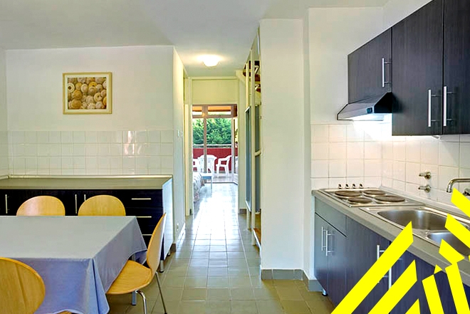 1/3 app – 37m2, dnevni prostor z dvema posteljama, enoposteljna spalnica, kuhinja, kopalnica, balkon;